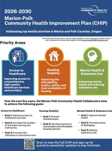 We align our work with the Marion County Community Health Improvement Plan (CHIP), which identifies the most urgent health and stability challenges facing our community from 2026–2030.