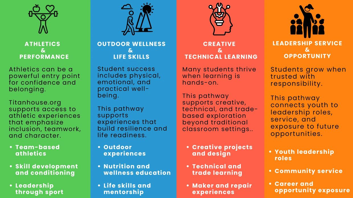 TitanHouse supports students by listening first, removing barriers, and connecting young people to opportunities that help them grow, explore interests, and build confidence.